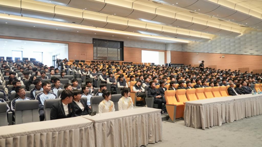 曹伟书记荣誉满身,先后荣获“中国好人”“第四届全国道德模范评选——全国诚实守信模范候选人”“辽宁省道德模范”“辽宁省‘雷锋奖章’”“五四奖章”等多项称号。活动中,他以“学思践悟新思想,踔厉奋进新征程”为主题,用生动的语言、鲜活的案例与真挚的情感,向师生们讲述了自己的奋斗历程:从微末起步,始终坚守诚信理念,经营“傻子”粮油店,不忘初心、担当社会责任,全力践行“把葫芦岛建成一座爱的城市”的梦想。他的分享让师生们真切感受到劳动模范的初心使命与信仰的力量。
