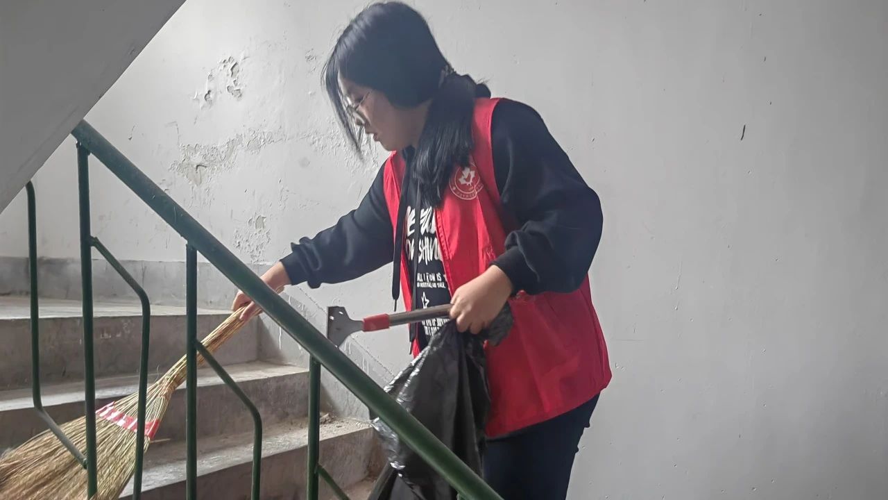 ▲ 打扫楼道卫生