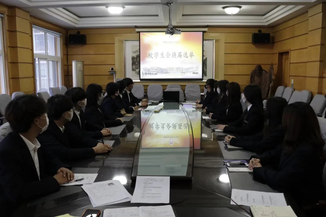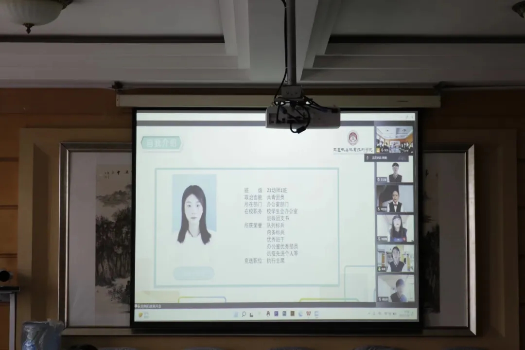 大连枫叶职业技术学院学生会换届大会于5月26日下午16:40分在腾讯会议顺利召开。出席会议的领导和嘉宾有:团委书记王博老师、团委刘博老师、20届主席团成员,部长以及21级校学生会竞选成员出席大会。