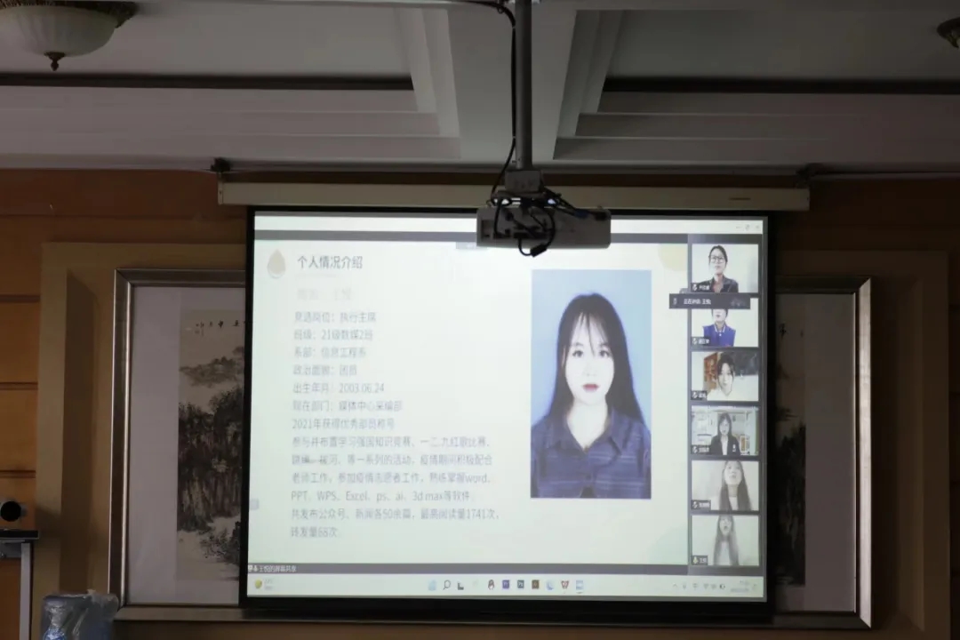 岁月匆匆而过,过去的一年,收获与挑战并存。我们曾在这里一起学习,一起成长,一起庆祝欢笑与泪水,每一次的“一起”都在彼此的生命里留下了不可磨灭的痕迹,成为我们的独家记忆。由于疫情原因今年的换届大会,有着些许不同,换届大会因受疫情影响只能采取线上视频竞选方式,各成员相隔数里,可遥远的距离却并不能阻挡我们。线上换届,既是枫叶学子的创新,也是枫叶学子的突破。