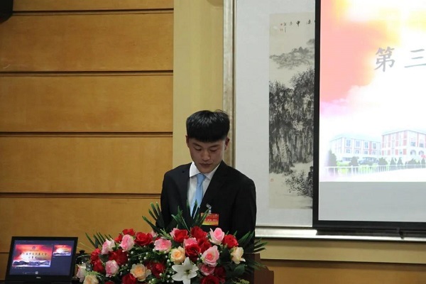 校学生会主席吴镇宇作了讲话。他首先祝贺大会胜利召开并圆满完成各项议程,向新当选的学生会成员表示热烈的祝贺,向一直以来支持学校共青团工作和助力青年成长的各院(部)党总支、分团委以及在本次大会中认真履职尽责的各位代表和会务人员表示衷心的感谢。他对与会代表和学生会成员提出三点要求:一是要践行新思想、砥砺新征程、把思想和行动统一到大会确定的目标任务上来;二是要奉献新力量、奋进新时代、更好地发挥学生会组织的作用;三是要树远大理想、行强国使命、为担当民族复兴大任打下坚实基础。他希望同学们能够高举中国特色社会主义伟大旗帜,争做校训精神、化大精神和时代精神的传承者、践行者,在中华民族伟大复兴的征程中书写青春的壮丽诗篇!