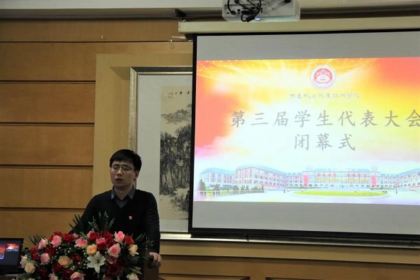 他表示此次大会的主要任务是总结过去的工作,提出今后的工作目标。希望广大青年学生以这次会议为契机,继承优良传统,坚持与时俱进,更加主动地进行创新,不断开创各项工作的新局面。最后,预祝大会圆满成功!