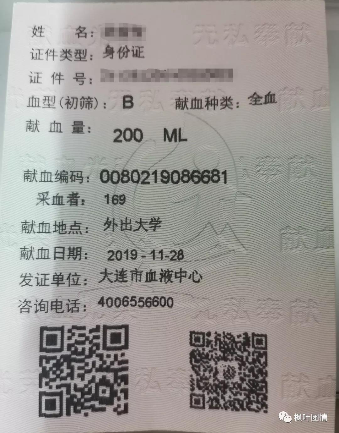 学院和大连血液中心举办此次无偿献血活动,让我们也献出了一份爱心,做出了一份贡献。这成为了我们大学生活中一件最有意义的一件事情。枫叶因我们而充满温暖!