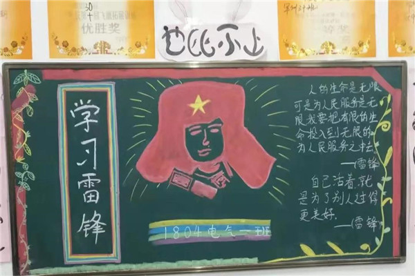 中职部各班级以“雷锋精神,有我传承”为主题开展了板报设计大赛。同学们精心设计的板报主题鲜明、布局美观、图文并茂,内容涉及雷锋生平、雷锋日记、雷锋语录、雷锋事迹等。多角度诠释了雷锋精神的内涵,引导学生人人学雷锋,人人当雷锋。