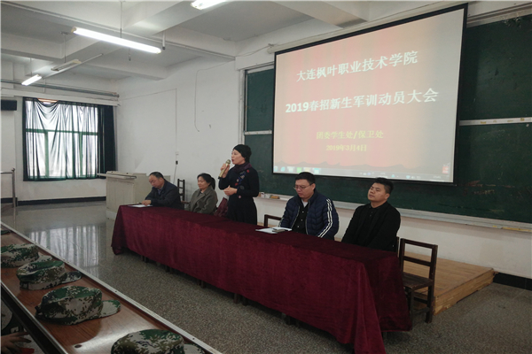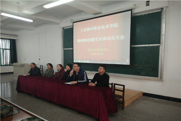 2019年3月4日上午9:00,学院2019年春季入学新生军训动员大会在1号教学楼3楼西多媒体举行。学院党支部书记副院长申秀梅、团委学生处保卫处处长高成林、教务处处长张冬冬、中职部教学副主任裴莉琳、中职部学生管理副主任赵坤坤出席大会,大会由学生处处长助理吕运福主持。