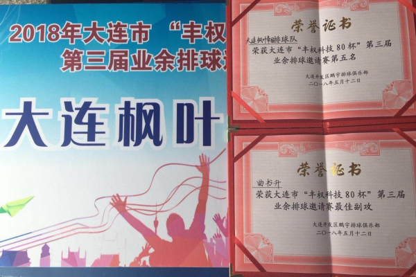 社团文化是校园文化的重要载体,是第二课堂重要的组成部分,排球社团作为学校最年轻的社团之一,自成立以来不断进取,努力拼搏,代表学院参加2018年 大连市“丰权科技80杯”第三届业余排球赛,在15个团队中过五关斩六将取得了前五的好成绩,排球社社长曲书升也获得了最佳副攻的荣誉。