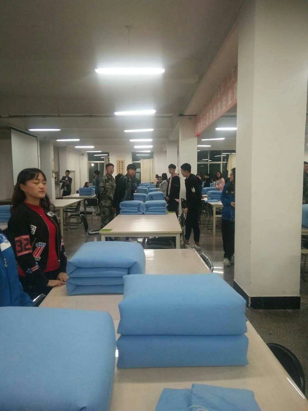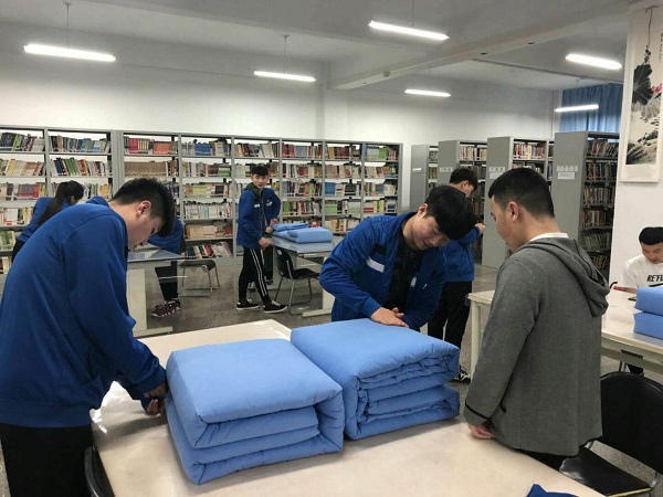 2018年3月26日晚18:40整,我院在图书馆进行17 级复训,严格按照军训的标准,强化学生的自律性。在军训教官和学生处吕老师的指导下,同学们认真的整理内务,一个个标准的“豆腐块”展现在大家眼前。