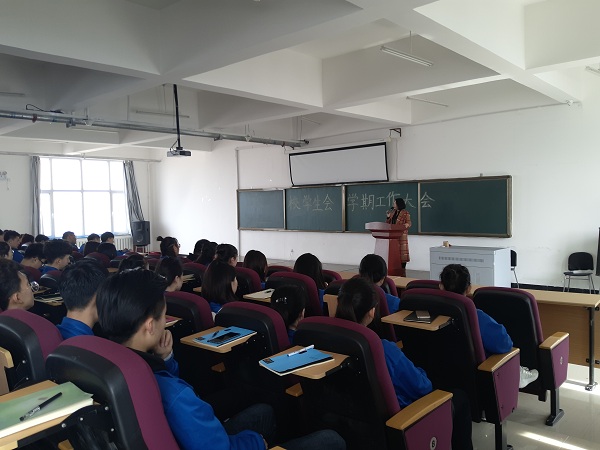 2018年3月21日中午12:00,校学生会学期工作大会在2号教学楼西多媒体顺利召开,会议由学生会主席刘祉璠主持。校学生会全体成员服装整齐,认真记录,以良好的精神面貌迎接新学期的到来。