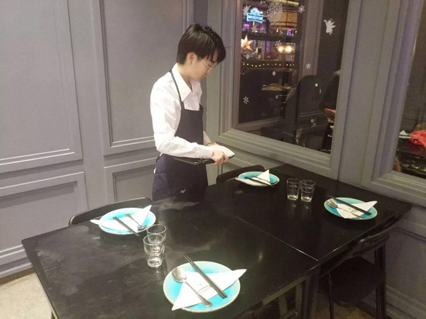 17高铁一班:姚世鸿没有梦想,何必远方!千盼万盼终于等到了社会实践出发的那一天,自己抱着无比激动的心情踏上了开往上海T131次列车,一路上的欢歌笑语我们到了上海。一下火车,我们被各个酒店的负责人带到了各自的集合地点,可能这个时候大家的内心是无比复杂的有想家的、不想和同学们分开的等等。经过昨天的初步安排我们14个人被分到了三个不同部门,我心满意足的被分到了自己想要去的西餐部,当自己穿上制服的一瞬间我可能明白了自己肩上的重担。中餐、宴会和西餐可能只有西餐的要求是最高的,因为要面对不一样的人群,可能还会有外国友人,所以要更严格的要求自己了。不管剩下这90天里会有什么样的挑战,我都会用最热情的、最饱满的态度去面对我接待的每一名顾客,在来的火车上,自己为这次社会实践总结出了八个字:身在他乡,志在远方;不忘初心,方得始终。我会为了这十六个字,为了自己信誓旦旦和父母、导员的承诺而努力的。
