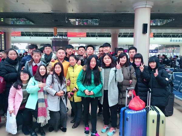 学院领导和老师在火车站护送学生