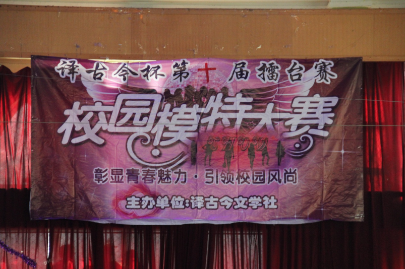 2014年10月29日下午3点。大家期盼已久的第十届译古今杯擂台赛,校园模特大赛总决赛正式拉开帷幕,本次大赛以彰显青春魅力,引领校园风尚为主题,目的是通过比赛挖掘具有潜力的校园模特。本届大赛经过预赛的激烈角逐,终于有16名选手脱颖而出,站在了这个决赛的舞台上。