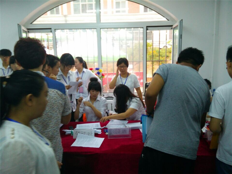 早上5点,学院迎接新生的校车开往大连站、大连北站、北岗桥等各个站点迎接全体14级新生入学。7点左右新生和家长开始陆续来到学校报到,办理相关手续。许多新生和家长为了提早迎接大学生活,适应新的生活环境,早早开车来到学校进行参观。通关系一楼是本次迎新工作的第一站,办理核对新生的录取通知书、提交学生档案等事宜;综合馆3楼主要办理新生入学的缴费等事宜;学院五角办公楼一楼进行办理领取被褥、洗漱用品等事宜;男女寝室楼的寝室老师分别为新生办理入住手续和分配寝室,各项工作有条不紊的进行着。