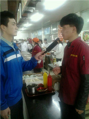 接下来小记者采访了一位勤工俭学的同学,他对记者说,“一方面是为了锻炼一下自己的自立能力,另一部分还可以贴补家用,减轻家里的负担,父母赚钱都不容易,能省一点是一点。”同时,我们还采访了一个食堂的档口老板,老板说:“为了让同学们吃的更加营养科学,更受同学们的欢迎,他们专门制定了荤素搭配的饮食方案,同学们吃得开心,工作起来也有动力。”