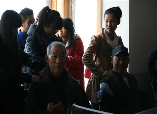 2013年11月15日下午15:00,有我校社联组织的爱心敬老团队第一次拜访寿星园的老人们活动。参加本次活动的有社联主席潘登和社联的全体成员,以及学校九个社团的成员。