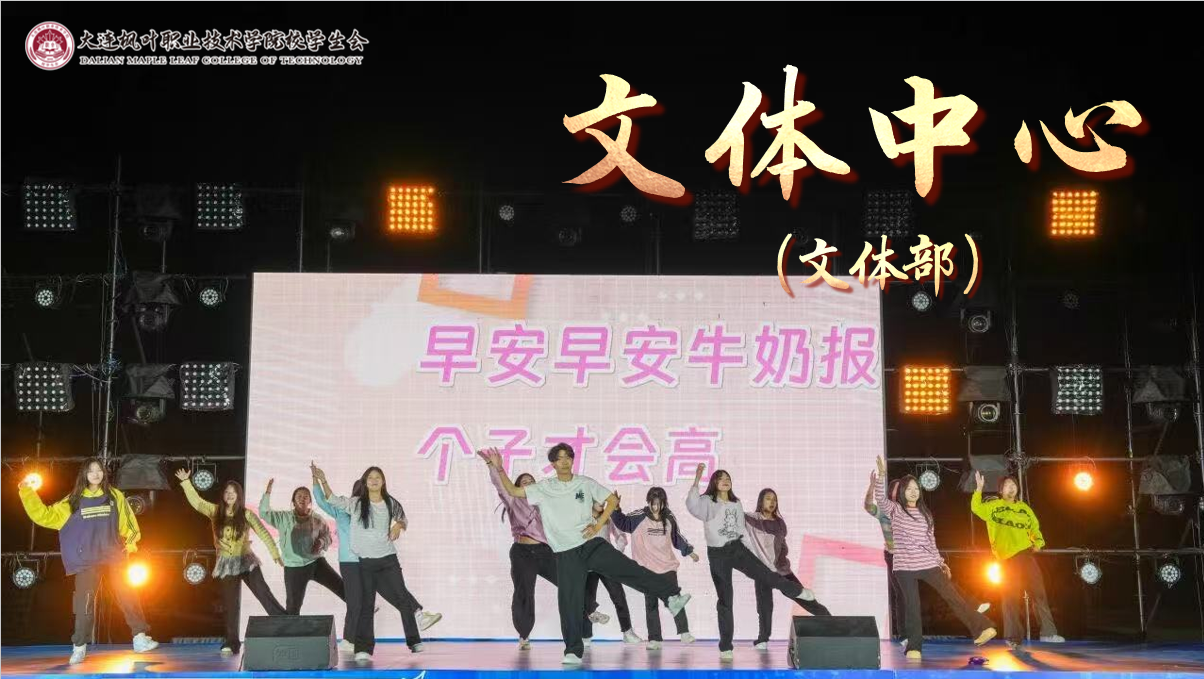 文体中心(文体部)是一个充满活力,多姿多彩的部门。主要负责学院各类文艺、体育活动,丰富同学们的课余生活。本着服务同学的精神开展工作,文体部强调“创新”,要求成员放开思路,在各项活动中力求突破,不墨守成规,每次活动都竭力办的新鲜,得体,活泼,生动,让同学们玩的开心,且有收获。文体部各成员间非常团结,工作氛围轻松和睦,与其他部门也联系密切,互相帮助。我们坚信新鲜血液的到来会让文体部更健全的体制,推出更多精彩的活动。